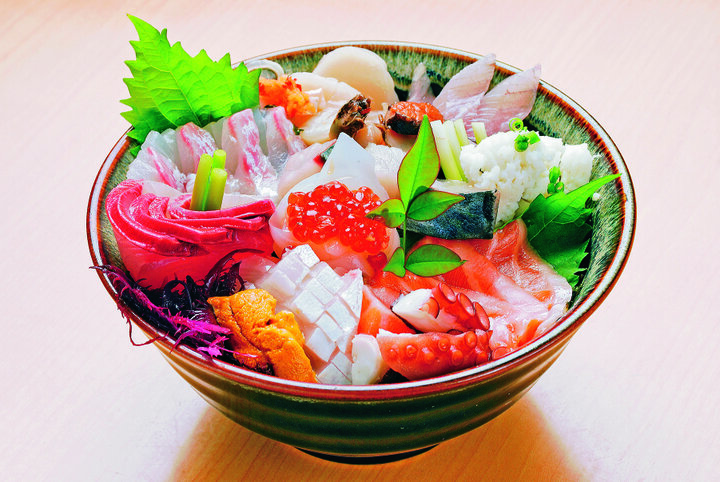 北浦のサザエや宇部のハモなどネタはほとんどが地物の海鮮丼1100円