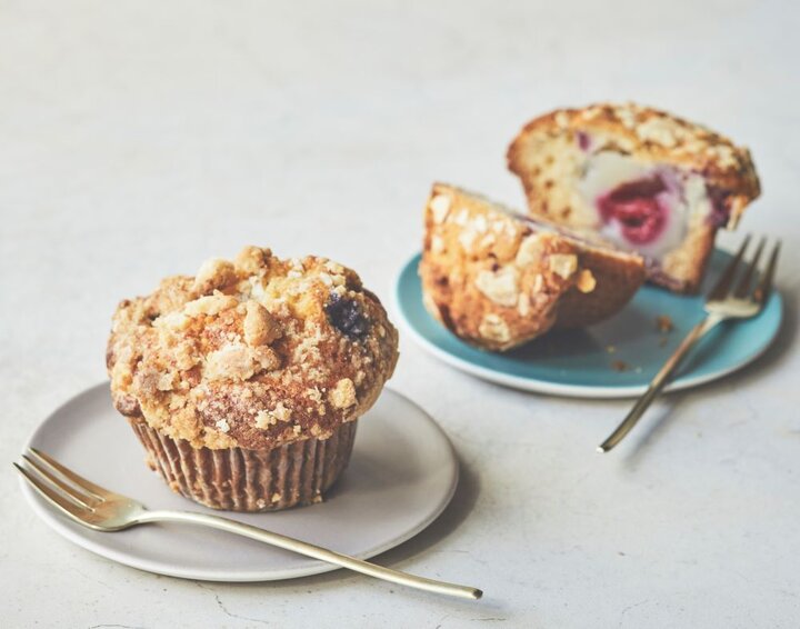 「Bonny’s Bake Shop」 (大阪・天満橋 ) 5/3(水・祝)→5(金・祝) 左から) ブルーベリークリームチーズマフィン、白あんラズベリーマフィン アメリカで食べたマフィンやパイのおいしさのトリコになった姉妹が始めた焼き菓子専門店。お店では毎日日替わりでたくさんの焼き菓子が並びます。中でも、焼きたての熱々マフィンは格別のおいしさです。