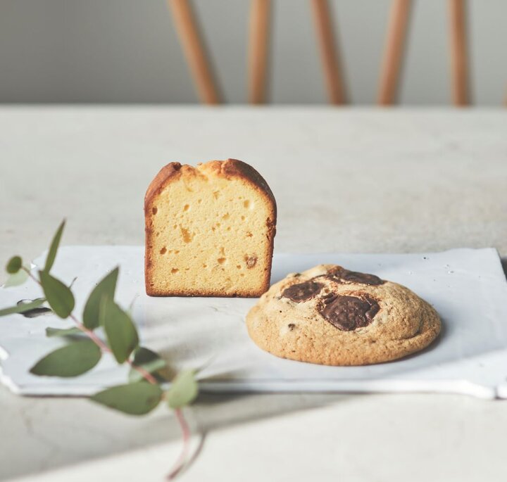 「OYATSUYA SUN」 (東京・桜新町)〈5/3(水・祝)のみ〉 左から) はちみつレモンのパウンドケーキ、アメリカンチョコチップクッキー “はちみつレモンのパウンドケーキ”は、フランスの伝統的な“ウィークエンドシトロン”をイメージし、 “ 週末を楽しむ”レモンケーキがコンセプト。 生地にははちみつとシロップに漬け込んだレモンピールを、仕上げのシロップはシチリア島産のレモン果汁にホワイトラムを加えて爽やかな味わいに 。日が経つにつれシロップの風味が生地へと移り、よりしっとりに、少しずつ変化する味わいを楽しんで。 また、コーヒーのお供にと開発したアメリカンクッキー は 、チョコチップがたっぷり入ったザクザク食感の生地と食べ応えのあるビックサイズが魅力です。