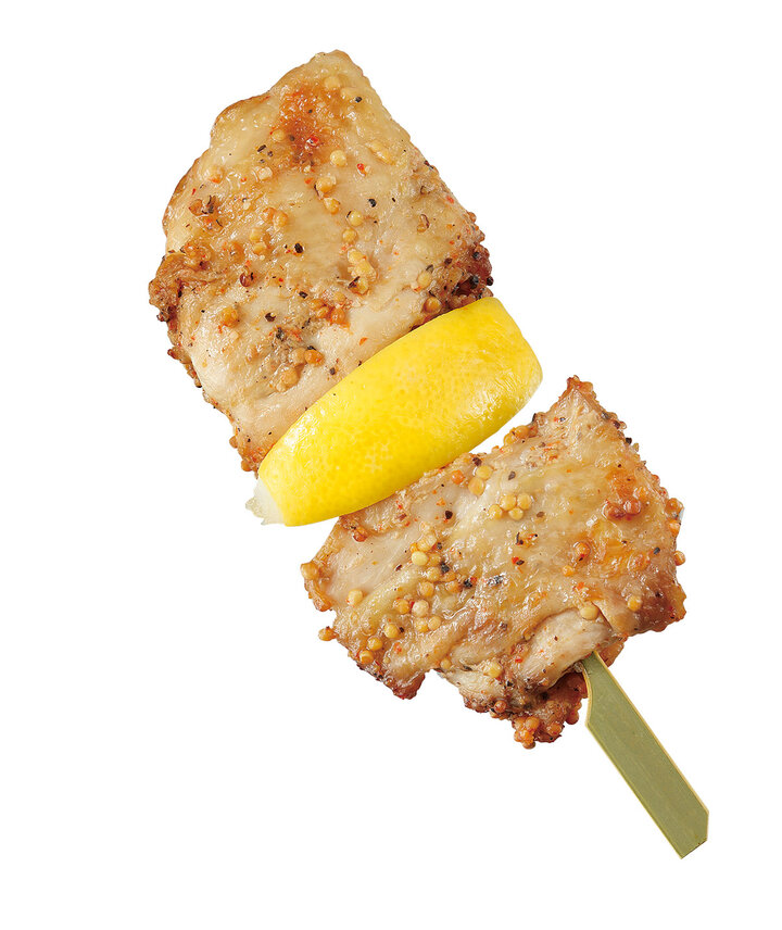 ■【麻布あさひ】◆地下2階4番地 「瀬戸田レモンチキンステーキ串」 《各日数量限定》 大ぶりな国産の鶏もも肉をスパイシーに味付け。レモンを絞ってさっぱりと。 ※東武企画品 ※瀬戸田レモン
