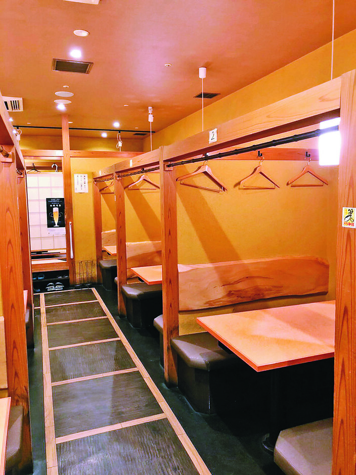 半個室や個室があり、ゆっくりと過ごせる落ち着いた空間
