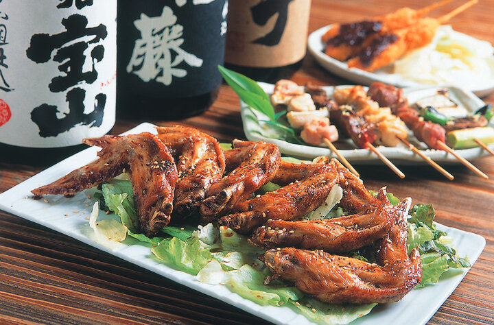 名古屋コーチンや国産若鶏などを使う店。名古屋コーチン手羽先唐揚げは、歯応えのある肉質と旨みが特徴。日本唐揚協会主催の「からあげグランプリ」で最高金賞を3年連続で受賞しています。
