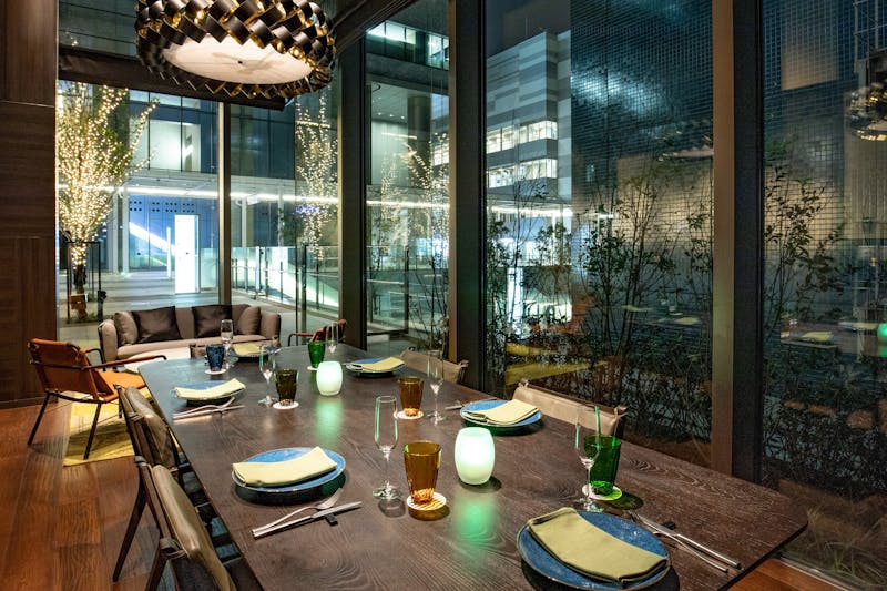 東京築地にある聖路加ガーデン47階のRestaurant LUKE。天井高13メートルのスタイリッシュな空間を囲む大きなガラス窓からは、東京タワー、東京スカイツリー(R)を始め、東京ベイエリアが一望できます。さらにレストランの両サイドにある地上221メートルの広いテラスからは遮るものがない壮観な青空、夕陽、夜景を堪能できます。