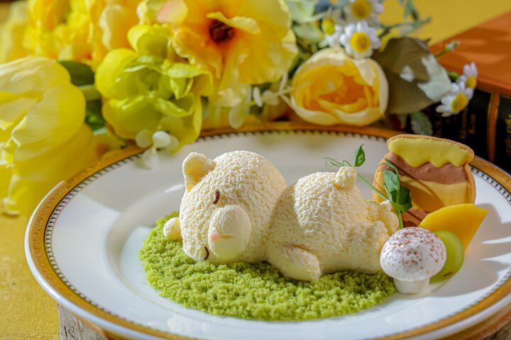 大阪「心斎橋セントグレースヴィラ」および芦屋「アートグレイス ネクスト アシヤ」では、「夢みるハニーレモンアフタヌーンティー」を、2023年6月~8月の特定日に開催しています。 アフタヌーンティーでは、キュートな‟くまさん”がアイコンのオレンジ味のロールケーキ、爽やかな酸味のレモンの焼き菓子やマカロン、はちの巣をイメージしたムース、コンディメントのはちみつナッツでいただく2種のスコッキーなどのスイーツと、軽食を楽しむことができます。 オプションスイーツは、森の中でお昼寝中の‟くまさん”をイメージしたレモンヨーグルトのムースを用意。味も見た目もSweetでHoneyなスイーツを堪能することができます。