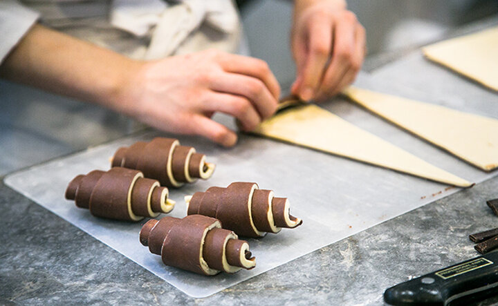クロワッサンは、ブレンドした3種類の北海道産小麦と発酵バターの香りと旨みをしっかりと感じられるよう、ベーシックなメニューを揃えているそう。 クロワッサンやパイなど、バターを折り込んで作るパンは温度管理がとても重要だと言います。生地を捏ね上げたときの温度から、休ませるときの冷蔵庫の温度、そして成型時の室温。 バターは室温が高いと、溶けて生地に馴染みすぎてしまいパリっとした食感になりません。低温長時間発酵でじっくりと旨みを引き出し、専門店だからこそ出来る涼しい厨房で素早く成形することで、焼き上げるときにきちんと保たれたバターの層が、パンの層をパリパリに仕上げます。 生地から焼き上げまでしっかりこだわったクロワッサンは、食べた瞬間から口の中にバターの芳醇な香りが広がり、とても贅沢な味わいです。