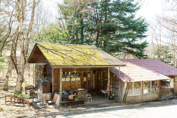 八ヶ岳の西麓に広がる自然豊かな人気の避暑地、長野県の茅野市蓼科。JR茅野駅からバスに揺られて約20分の広見バス停で下車し、そこから3分ほど歩いたところに建つ、古い山小屋のような建物が「蓼科ハーバルノート・シンプルズ」です。 天井の低い木造りの小屋は、もともと開拓農家の住まいとして使われていたのだそう。建物の一部を増築し、少しずつ手を加えながら、今も大切に再利用されています。