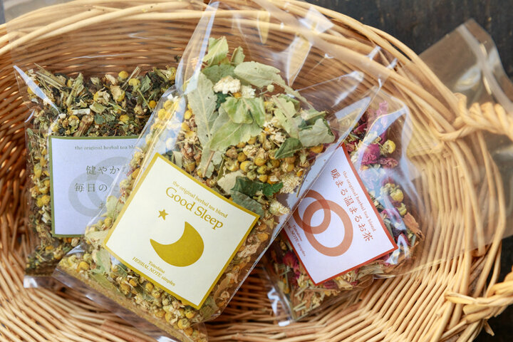 オリジナルブレンドのハーブティーは、ハーブの特性を生かしたさまざまなブレンドが種類豊富に揃っています。 「グッドスリープ」「リフレッシュ」「リラックス」など、目的別のハーブティーもあるので、ラベルの説明を読んで気分や体調に合ったものを選ぶのもよさそう。