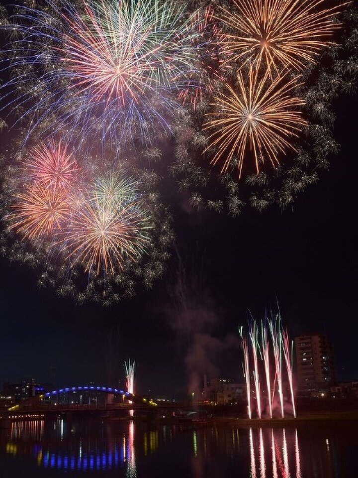 身近なふれあいの場を設けることにより、更なる地域の活性化を図り、市勢の発展を目指すことを目的として「大和田公園会場」「東浦和 大間木公園会場」「岩槻文化公園会場」の3ヶ所でそれぞれ開催される花火大会。さいたま市花火大会のオープニングを飾る大和田公園会場は周辺に高い建物がないので、どの方角からでも観覧可能です。 早打ちやスターマインなど、色とりどりの花火が夜空を焦がします。