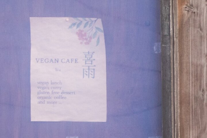 神戸の人気観光名所のひとつ・北野異人館街。レトロな洋館が集まるこのエリアにはめずらしい、昔ながらの古民家が「VEGAN CAFE 喜雨(キウ)」です。メニューはすべてヴィーガン対応、無農薬や有機栽培の野菜を使い、調味料も身体にやさしいものをセレクト。友だちの家に遊びに来たような感覚で、身体にやさしいヘルシーなランチやグルテンフリーの自家製スイーツがいただけます。
