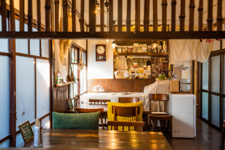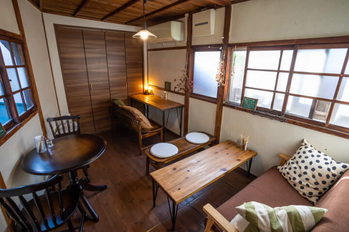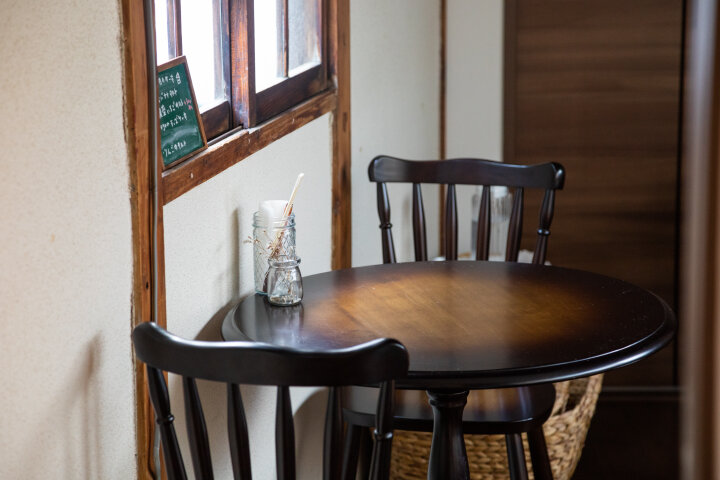 以前は大家さんの住居だったため、できるだけ人が住んでいた気配を消さないように改装。年季が入った木枠とすりガラスの窓から、昔の名残を感じられます。