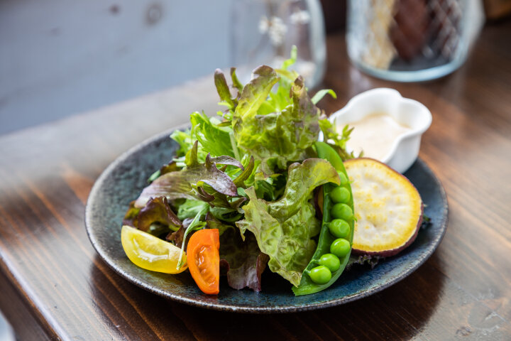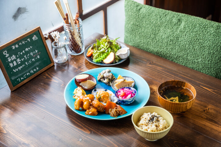 こちらでいただける料理は、お肉、卵、乳製品といった動物性食品をつかわないヴィーガンメニュー。店主の八朔伊久美さんは、もともと外食が好きだったものの、食事を有機野菜や無添加の食品に変えたところ、体調がグッと良くなったそう。今まで以上に野菜のおいしさに気付けた喜びから、ヴィーガンカフェを開いたと言います。