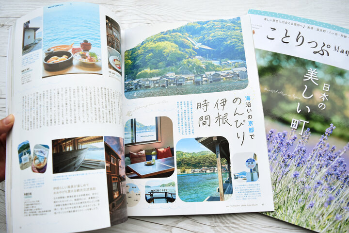 「ことりっぷマガジン」6月13日発売の最新号「日本の美しい町」では、特集のひとつに伊根湾を取り囲むようにある舟屋の風景が美しい、伊根町をご紹介しています。 約230軒が建ち並ぶ、切妻造りの2階建ての構造を持つ舟屋では、反射するキラキラ光る日本海、海鳥が飛ぶ姿といった夏の風景を見ることができ、いつもと違うなごやかな空気感に気づかされます。また、海を眺めながらカフェでくつろいだり、海の上から舟屋の風景を眺めたり、舟屋をリノベーションした宿で伊根の温泉につかったりと、伊根での最高の過ごしかたをご案内しています。