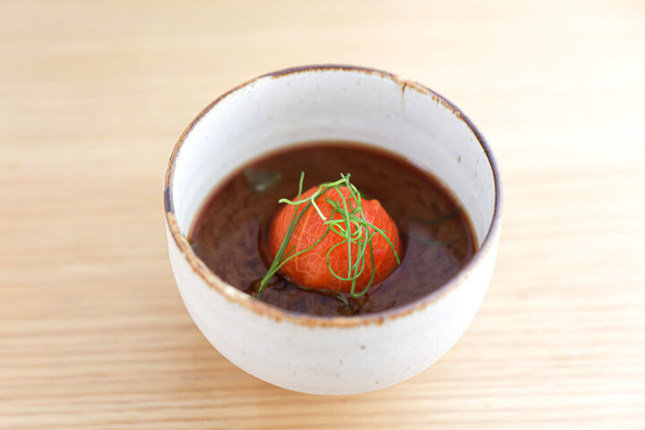 ごはんを食べると恋しくなるのが味の濃いもの。赤出汁は、カツオと昆布の二番出汁に干し椎茸、いりこをブレンドした濃厚な風味。けれど濃すぎることはなく、トマトの酸味で爽やかにいただけます。