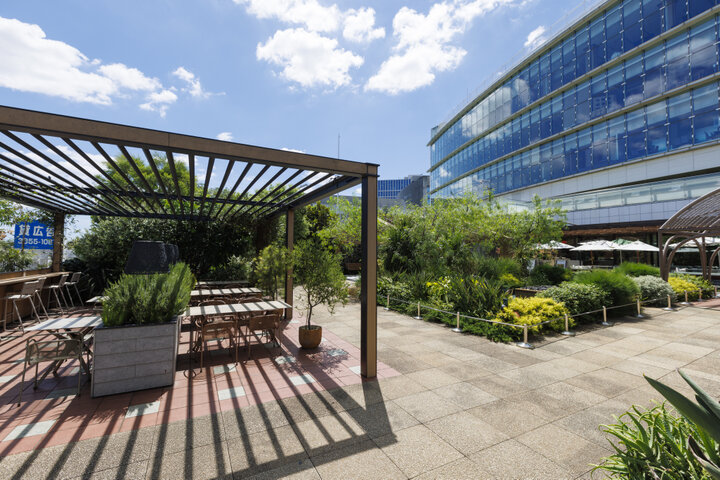 屋上庭園内のテラス席でのんびり時間♪二子玉川駅近のカフェ「フラベドルーフトップ」で季節フルーツのサンデーを