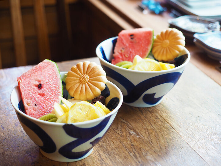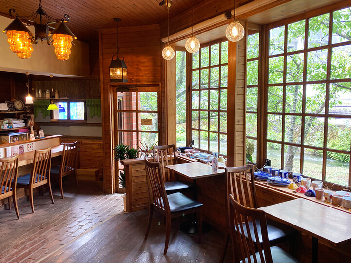 ディレッタントカフェから徒歩8分ほど、全長1.5kmの穏やかな源兵衛川沿いに、「Cafe らーらぷろむなーど」はあります。築40年を超える店内には、アンティークな雑貨があちこちに。初めてでも、ほっと落ち着ける、あたたかい空間が広がっています。 ランチの後にいただきたいのは、こだわりのコーヒーにあう「バスクチーズケーキ」のほか、夏季限定の新メニュー「クリームあんみつ」や「かき氷」など。暑い日にぴったりのデザートを源兵衛川を望む窓辺の特等席で味わっていると、心癒されます。