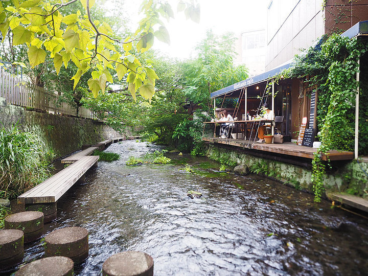 三島と修善寺を結ぶ静岡のローカル線、伊豆箱根鉄道「三島広小路駅」から歩いて3分ほど。水の都・三島市の中心部を流れる源兵衛川の川沿いに建つのが、「ディレッタント カフェ」です。 三島の野菜と沼津の魚を使ったイタリアンベースの料理は地元でも評判。透き通った清流を望むテラス席で味わえばおいしさも格別です。
