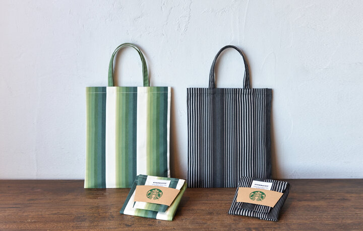 小倉織は、400年以上の歴史をもち、豊前小倉藩の特産品として全国に広がった後、昭和初期に一度途絶えたものの、昭和59年に染織家・築城則子氏により復元・再生されました。先染めした糸を使用し、経糸が緯糸より密になるように織ることで丈夫な上、色鮮やかなグラデーションの縞模様が美しく、綿織物でありながらシルクのような艶やかな光沢や滑らかさがでて、使うほどになめし革のような風合いを帯びてくるのが特長です。 バッグは、北九州のパートナー(従業員)が地域のイメージを出し合い、小倉 縞縞の美しい縞模様のファブリックの中から生地を選び、商品ができました。 さらに、バッグの中にペーパーカップ型のポケットを仕込み、スターバックス、小倉縞縞(生産者)、北九州(コミュニティ)の名称を入れ、地域とのつながりを表現しました。このポケットにはバッグを折りたたんで収納することもでき、コンパクトにして持ち運ぶことができます。
