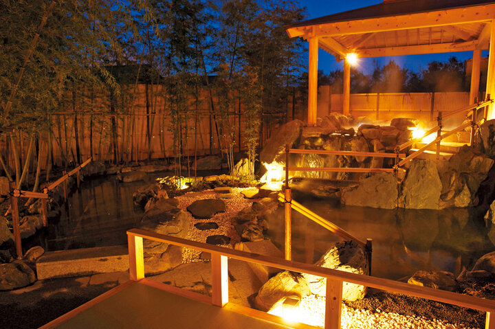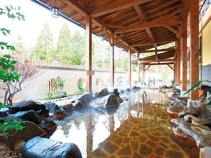 阿蘇五岳を一望する高台にあるホテル。大浴場や露天風呂の湯船を満たす湯は、まろやかな肌ざわりでなじみやすく、湯上りには肌がすべすべになると評判です。露天風呂付きの客室もあります。 ※改装のため2023年8月24日~12月22日休館