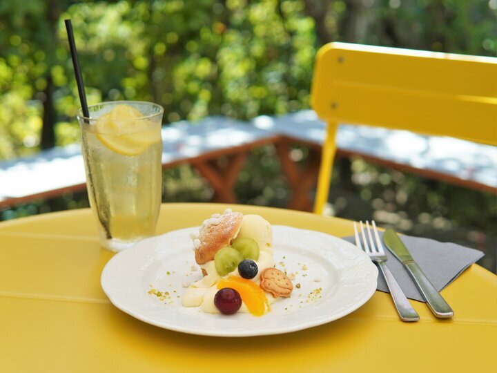 お店の奥に素敵なテラスが広がる「お菓子と喫茶 マルン」。パリのカフェ100件を巡ったオーナーパティシエが、その経験から得たエッセンスをお店づくりや手づくりのお菓子にふんだんにちりばめたカフェです。北鎌倉の心地のいい風を感じて、のんびりと過ごしませんか。