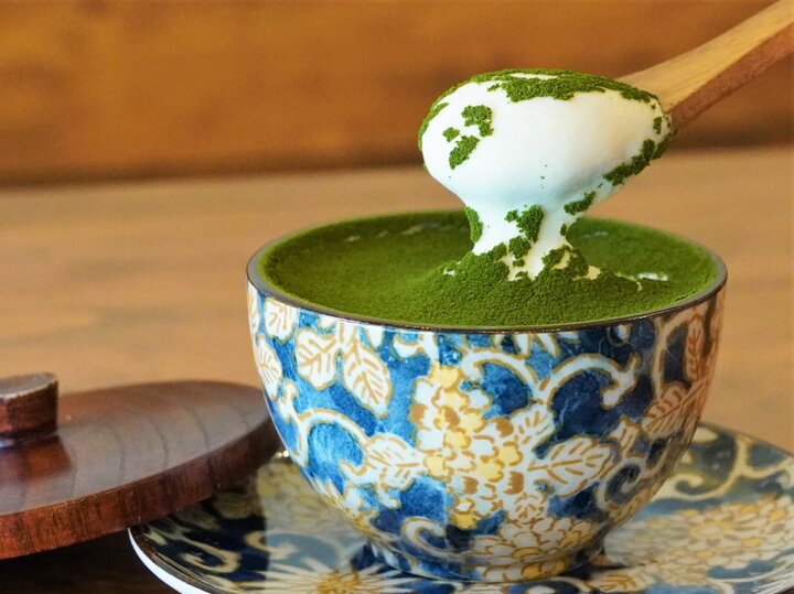ラテアートは「抹茶ラテ」や「ほうじ茶ラテ」(660円)にも。繊細なリーフとお花のモチーフをシンプルな刷毛目の抹茶茶碗に描いていきます。口あたりもマイルドで、愛でてよし飲んでよしの秀逸なラテです。