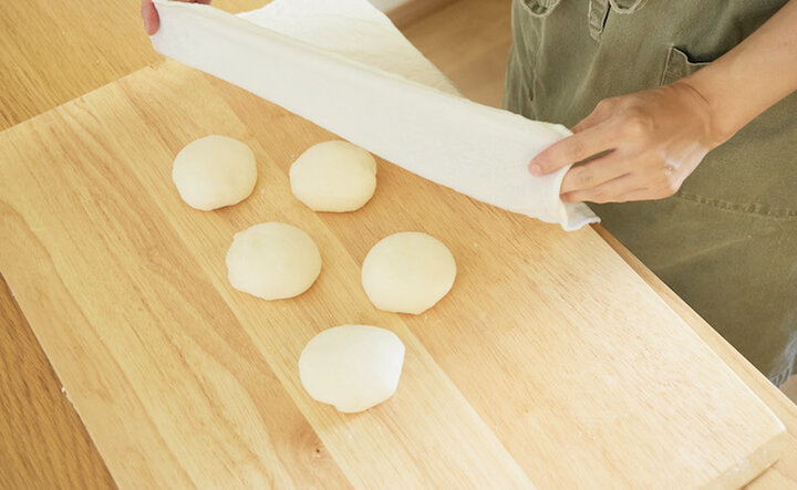 ・軽く丸めた生地に濡れ布巾をかぶせ、室内で休ませます。