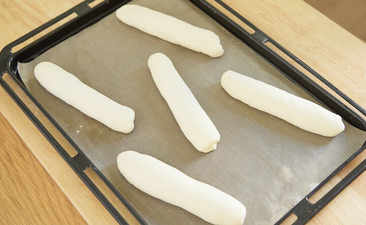・成型した生地をオーブンシートを敷いた天板に間隔をあけて並べ、発酵させます。