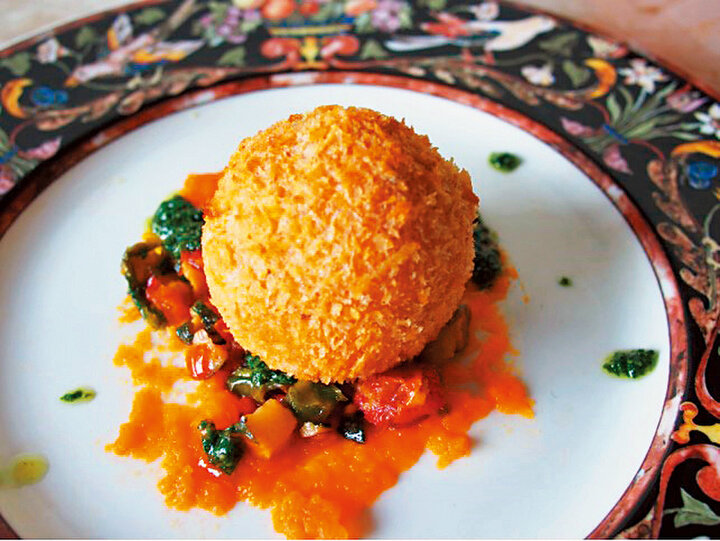 自家菜園の野菜など、季節ごとの食材からシェフがインスピレーションを得て作り上げたトスカーナ料理が味わえる。写真の料理は5500円のコースより