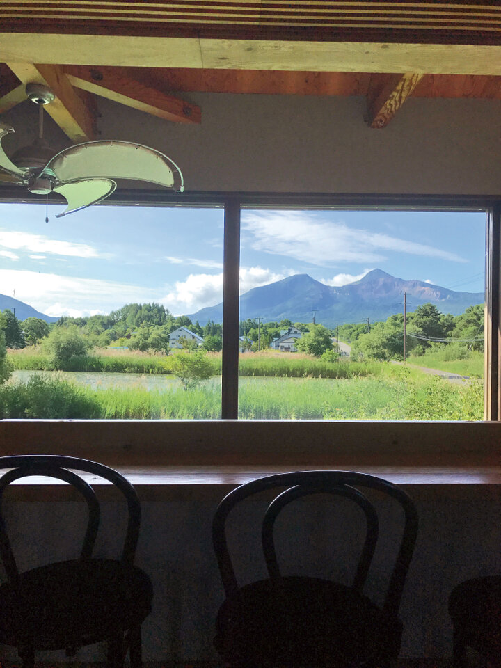 2階カウンター席からの磐梯山も絵になる