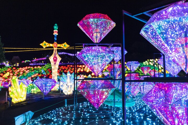 11月11日(土)~2024年8月31日(土)、伊豆ぐらんぱる公園特設エリアにおいて、「日本初!体験型イルミネーション伊豆高原グランイルミ ~9thシーズン~」が開催。 今シーズンは、「光のオーケストラ」、「ラグーンエリア」、「森の散歩道」が新たに誕生。昨シーズンに引き続き、指輪のトンネル、蝶々、ダイヤモンド、金貨、銀貨、勇者の剣などなど、さまざまなランタンやイルミネーションで彩られます。