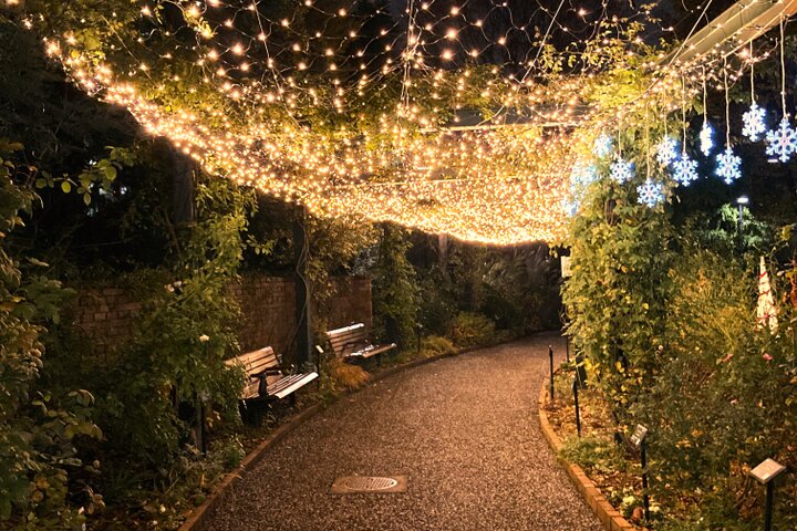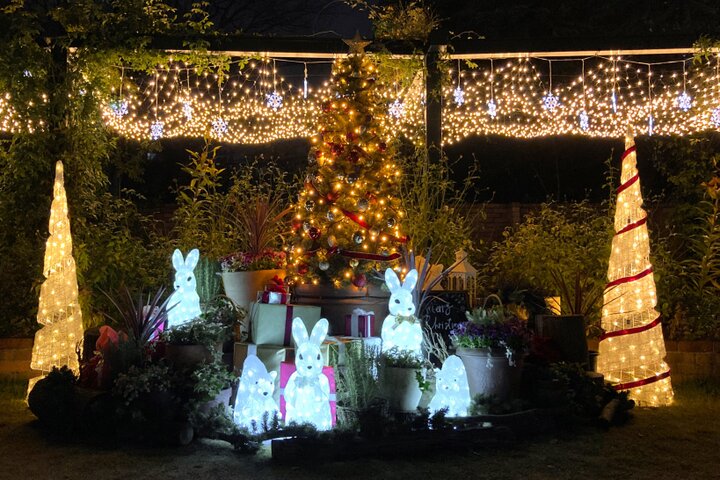練馬区立 四季の香ローズガーデンでは、イルミネーションが冬のガーデンを温かく照らします。パーゴラには光の天井が連なり、「香りのローズガーデン」の中心には優しい灯りのツリーや子供たちに人気の動物たちが迎えてくれます。「色彩のローズガーデン」には、ホワイトクリスマスをイメージした白を基調としたフォトスポットが登場します。 さらに通常9時から17時の開園時間を土曜日、日曜日は特別に19時まで延長し、クリスマスイルミネーションをゆっくり楽しむことができますよ。
