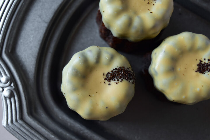 光沢のある黒色のパッケージは高級感が漂い、艶のある深い焼き色のカヌレが中から顔を覗かせると心浮き立ちます。オンラインショップでお取り寄せをすると冷凍便で届き、一時間程度常温で解凍すれば食べごろです。