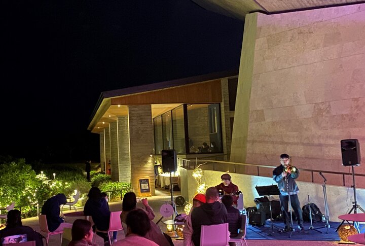 崖の上に位置する大屋根デッキでは、沖縄で活躍するジャズミュージシャンによるライブが楽しめます。70年以上の歴史がある沖縄のジャズは、飛び入り演奏やその日の雰囲気でアレンジするなど、おおらかでリズミカルな演奏が特徴です。大きな屋根が海からの波音を取り込む大屋根デッキで行うライブでは、波音に演奏が重なりバンタカフェだけのセッションが生まれます。 【うちなージャズライブ】 開催日:期間中の土曜日(1月13日除く) 時間:19:00~ 30分ほど 料金:無料