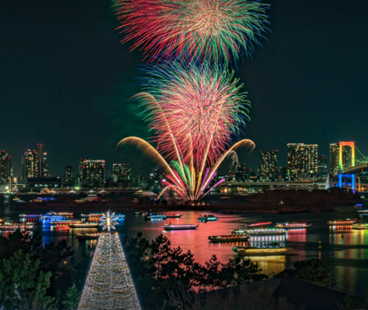 12月23日(土)、お台場 自由の女神沖から打ち上げる「お台場レインボー花火2023」が開催。凛とした冬の夜空にダイナミックな華が咲き、クリスマスを意識したイルミネーションがお台場をより幻想的に彩ります。音楽と連動したミュージック花火を楽しんでくださいね。