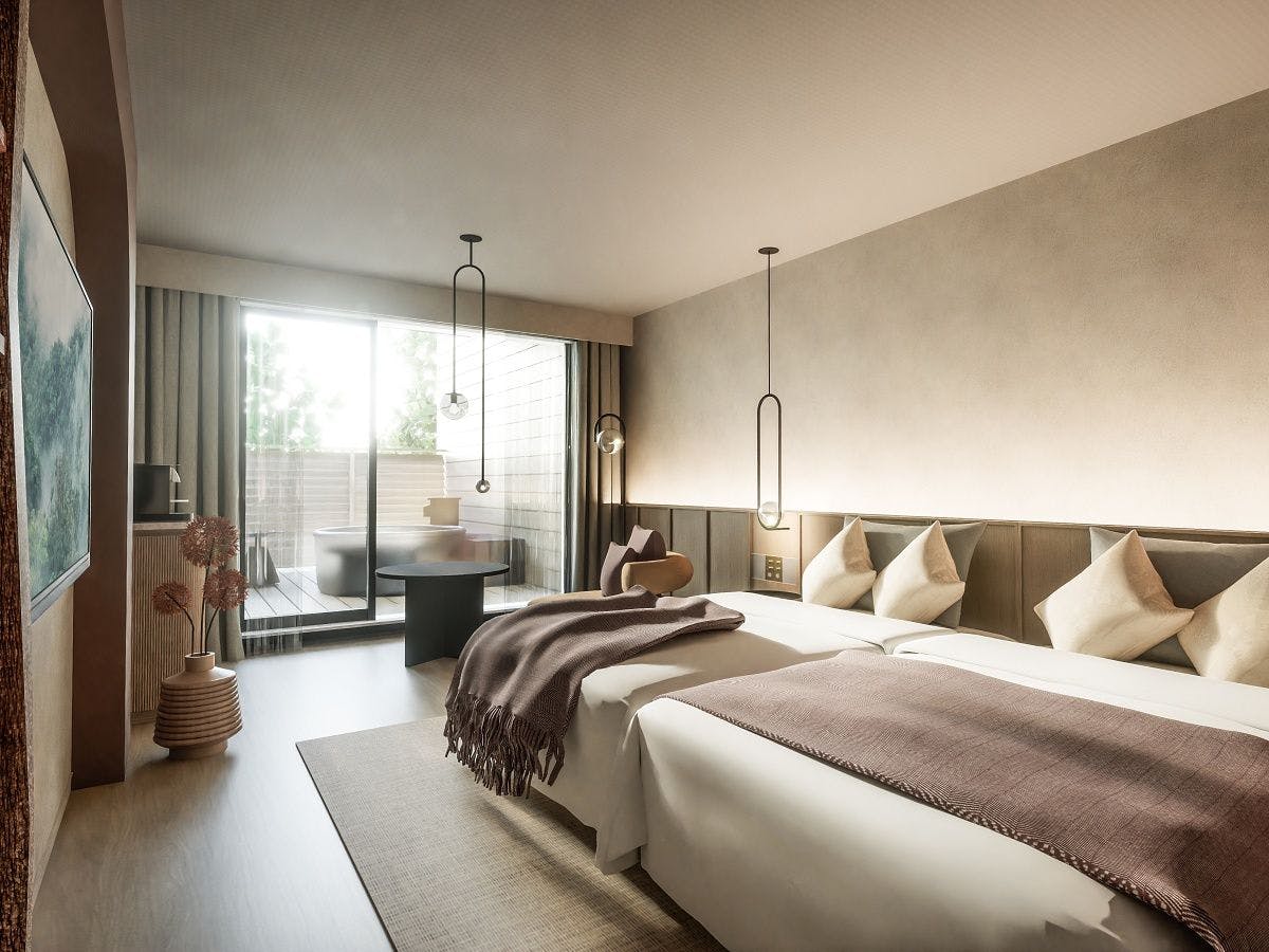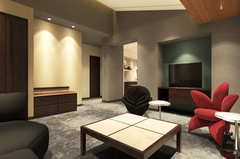 鎌倉古今の2店舗となる「仙石原古今」。静寂が広がり、 箱根の豊かな自然を体感できる、わずかオールスイート5室のスモールラグジュアリーホテルです。お部屋は92平米から126平米。日々の喧騒からはなれ、箱根の景観を望む空間、全ての客室で、ドライサウナや水風呂、大涌谷温泉を樂しめます。