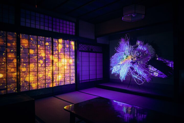 「愛知県指定有形文化財 伊藤家住宅×花とデジタルアートの祭典 2023-2024」は、四間道の町並みのシンボル・伊藤家住宅を特別に公開し(通常は非公開)、華道や書道、舞妓・芸妓文化など日本の伝統的な文化芸術とプロジェクションマッピング・デジタルアートとのコラボレーションによる展覧会です。 江戸時代の名古屋城下町の面影を残す貴重な建物を舞台に、日本が世界に誇る文化芸術の数々とデジタルアートが融合した幻想的なアート空間をぜひお楽しみください。