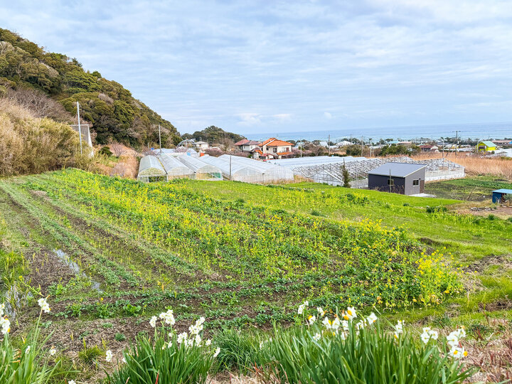 温暖な気候の南房総市は、冬から春にかけて水仙や菜の花が咲き始め、桜が咲くころまで花摘みが楽しめます。房総市白浜町はカレンデュラの生産量が日本一。中央アジアのキルギス共和国で出会い、カレンデュラに魅せられて移住した五十嵐夫婦が営む農園「ベレケの村」では、カレンデュラの花摘みや生コスメ作り、ランチが楽しめるワークショップを体験できます。