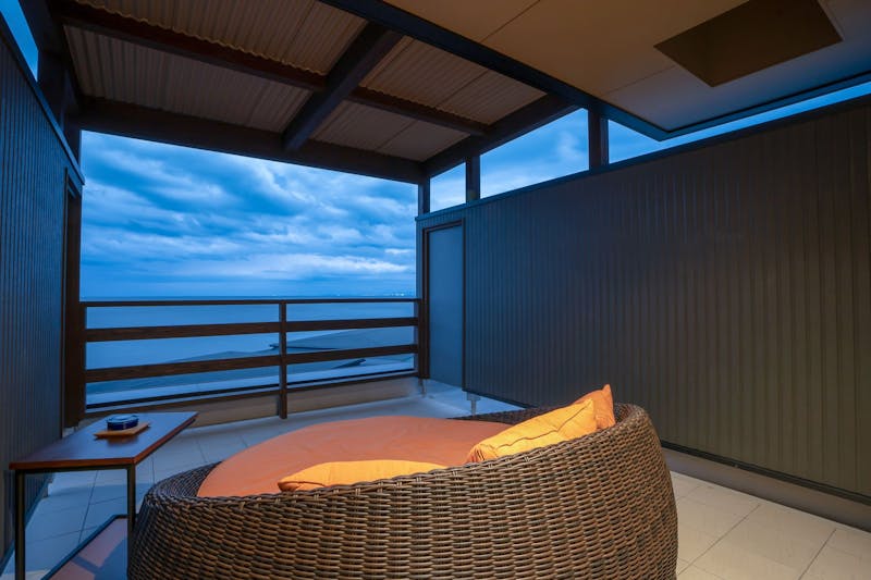 3500坪の広大な敷地には31の客室があり、海からの風と松林の間にある静かな環境で寛ぎのひと時を過ごすことができます。全客室には天然温泉が楽しめる贅沢なビューバスを完備しており、身も心も癒される至福のひとときを過ごすことができます。また宿泊ゲストは、AMANE RESORT SEIKAIの大浴場を利用することも可能です。