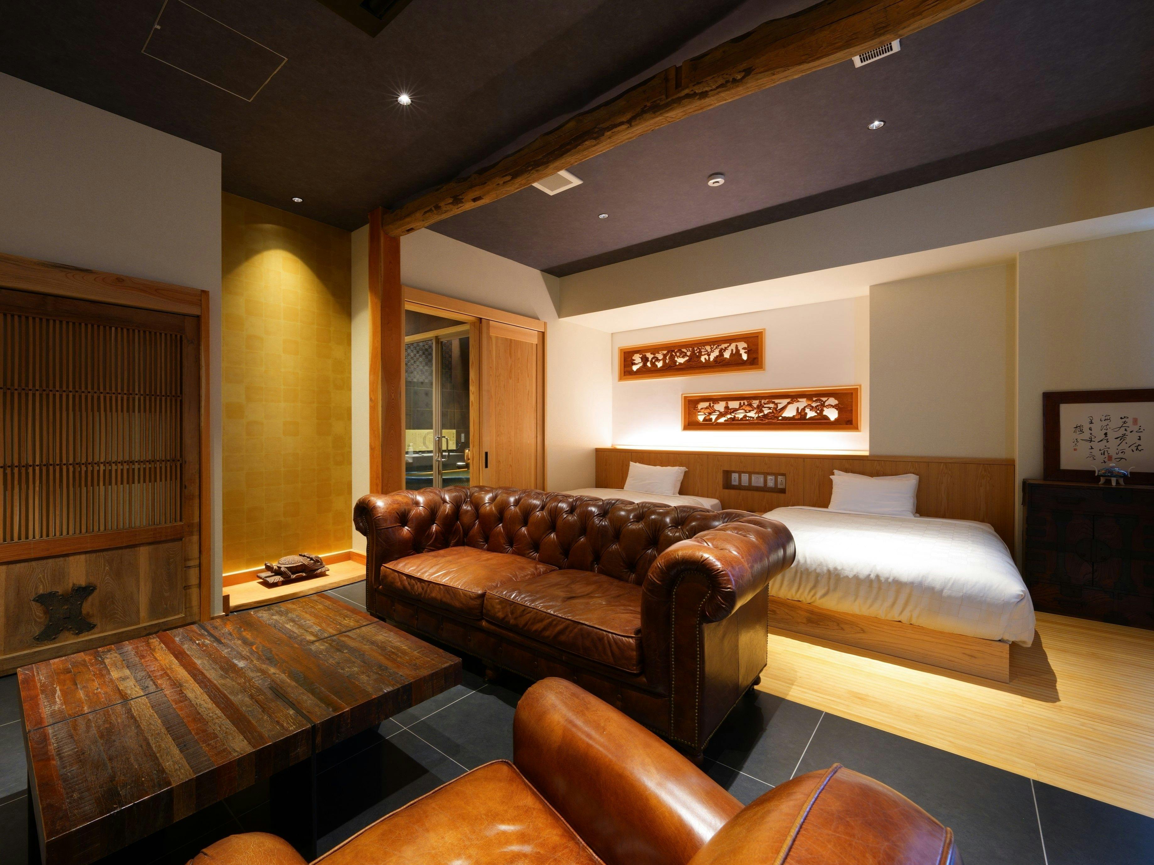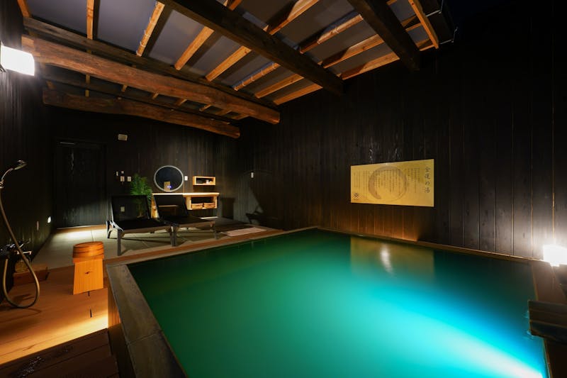 全14室、客室ごとに趣の異なるお風呂は、源泉100%かけ流し。美肌効果・肉体疲労の効果が期待される、全国有数の成分量の多い温泉です。別府温泉を使った贅沢な足湯では、お好みの和スイーツやドリンクを愉しみながら、寛ぎと癒しに身をゆだねるひとときを過ごすことができます。屋上テラスにも足湯があり、晴れた日には満天の星を眺められることも。