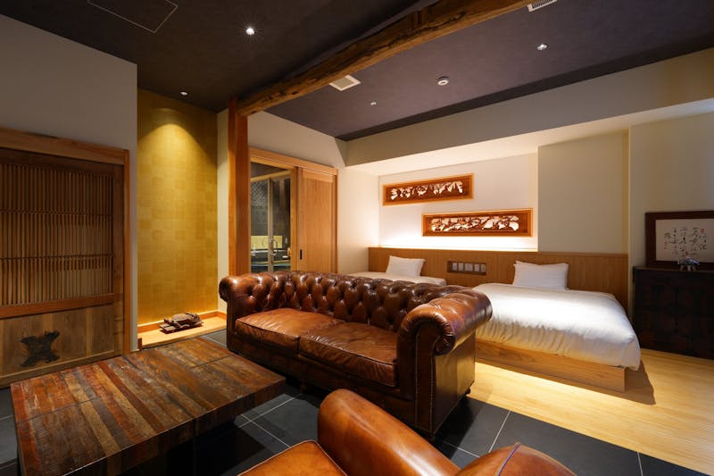 別府駅から徒歩約11分。100%源泉かけ流しの温泉が楽しめる和のホテル「MURE Beppu」