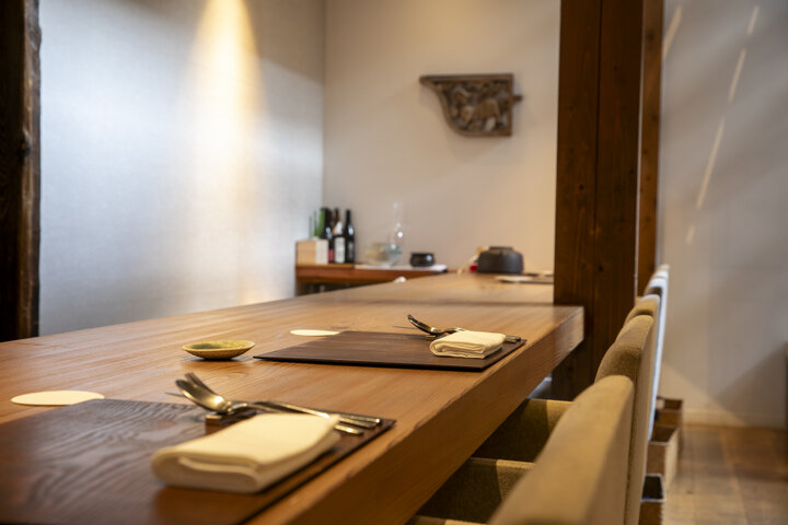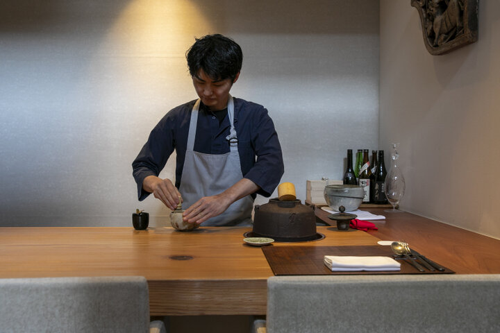 茶道の心得もある小坂シェフ。カウンター席でスタッフと会話することも楽しみのひとつ