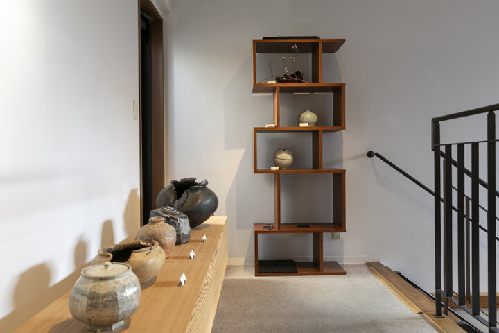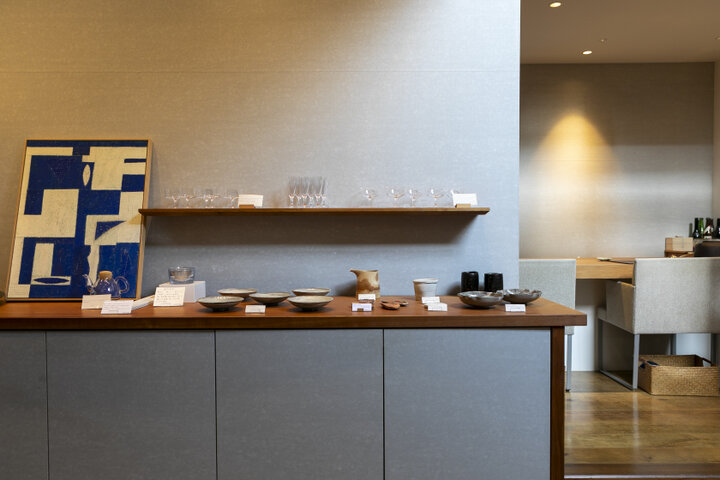 店内にセンス良くディスプレイされた茶道具やうつわたち