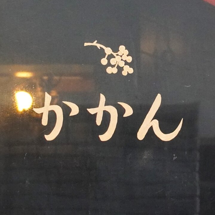 模様の入ったガラスの木のドアがレトロな雰囲気を醸し出す「かかん本店」。昭和の時代にタイムスリップしたかの様な店構えで、ランチライムには行列のできる人気のお店です。