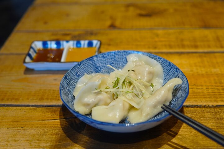 モチモチとした皮がクセになる「水餃子」は定食のほかに単品でもオーダーできるので、麻婆豆腐や魯肉飯の定食に追加するのがおすすめです。豚肉とエビのジューシーな具材に大葉がほのかに香ります。黒酢と胡麻の2種類のタレでどうぞ。