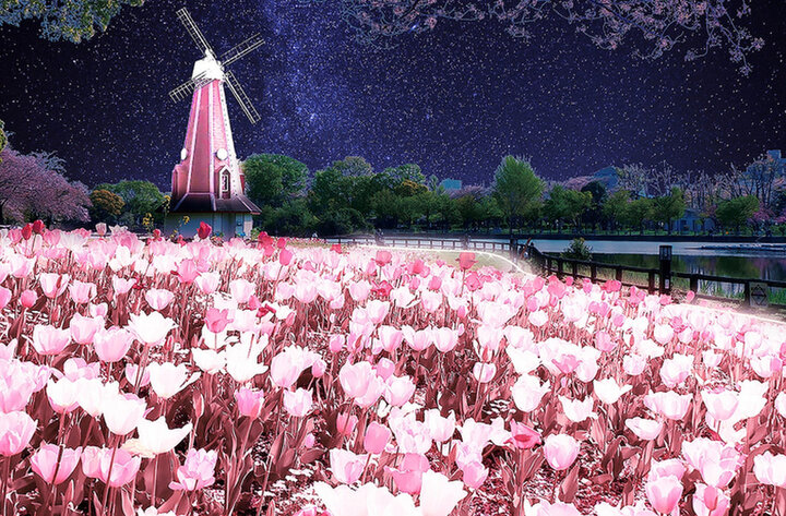 「花と光のムーブメント」は浮間公園でも開催。2万球のチューリップと風車の異国情緒溢れる風景を見ることができます。 また、春の訪れをテーマに、チューリップとサクラを燃料電池車発電によりライトアップするほか、期間限定で浮間ヶ原桜草圃場もライトアップ。音楽に合わせて光の色や明るさが変化するライティングとチューリップやソメイヨシノ、サトザクラ、サクラソウなど、春の花々の移ろいをお楽しみくださいね。