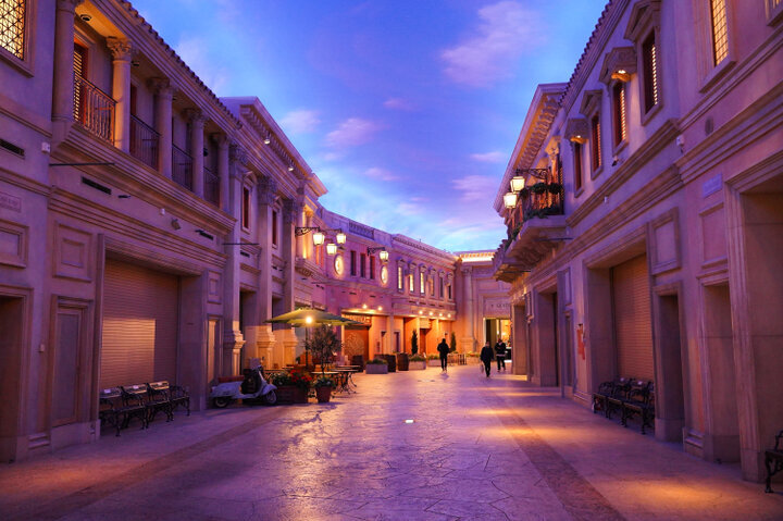 通路のヨーロピアンな街並みが、物語への没入を誘う