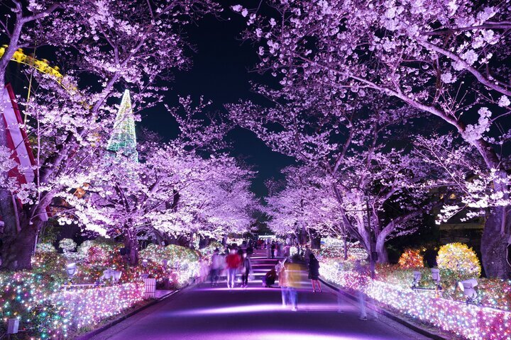 世界で活躍する照明デザイナー石井幹子氏がプロデュースする好評開催中のジュエルミネーションが、咲き誇る桜をライトアップする「夜桜ジュエルミネーション」に進化します。60周年を記念し、全長180mの桜並木では、桜のイメージを強調する光の演出を新たに追加。「メリーゴーランドドッグ」も周年特別仕様になりますよ。 園内に点在する桜が幻想的に照らされ、一層華やかな雰囲気で、春の訪れを感じてみませんか?