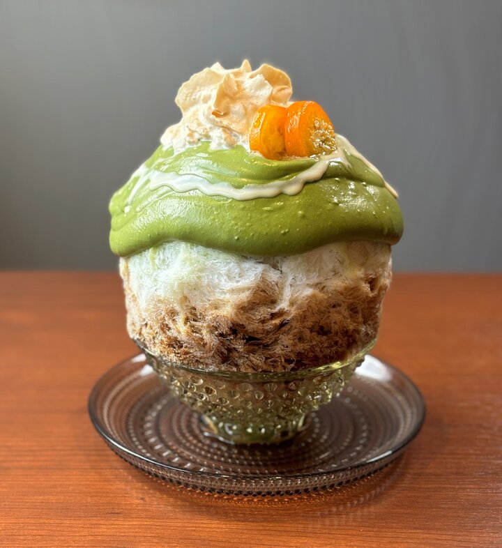 [初登場][実演]<京かき氷つみき> 【京都歴代のれん市限定】京のお抹茶白あん仕立て 旬のフルーツや季節の食材を使ったかき氷が⼤⼈気のお店、京都四条新町のかき氷専⾨店<京かき氷つみき>が初出店します。 今回は、京都府和束町東茶園の高級抹茶を使⽤した抹茶クリームと、丹波黒豆きな粉のエスプーマを贅沢にトッピングしたかき氷が、伊勢丹新宿店限定で特別に登場します。