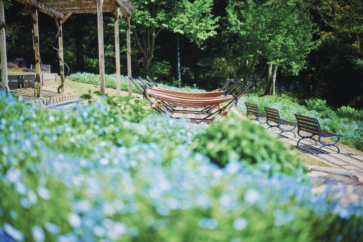 大阪市立長居植物園では、約2万5000株のネモフィラが一面に咲き揃う絶景が楽しめます。 また、夜になると長居植物園は、チームラボによる夜の野外ミュージアム「チームラボ ボタニカルガーデン 大阪」となり、ネモフィラ畑が光り輝く作品を見ることができます。