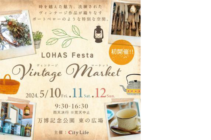 万博記念公園にて時を超えた美しい逸品が集う「Vintage Market」が初開催。世界各国から集められたヴィンテージ・アンティーク品は家具・インテリア・雑貨・食器・古着など幅広いカテゴリーの作品が数多く出品、ヴィンテージ素材のアップサイクル作品、使い込まれるほどに味がでる革や真鍮のクラフト作品、グリーンフラワー、素材デザインにもこだわったグルメエリアも登場します。 歴史と個性を持った作品と、豊かな自然が織りなす唯一無二の空間へ訪れてみませんか?