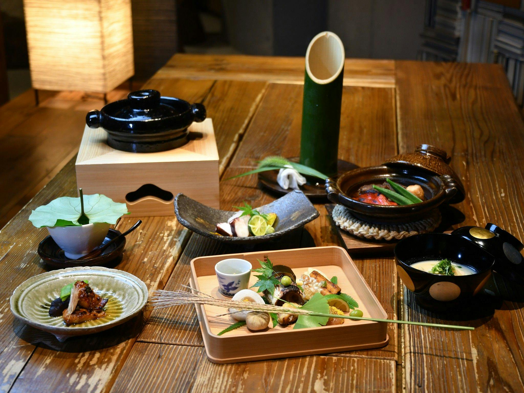 自家菜園で作られた野菜で繊細に調理された料理の品々は、身体の深くまで染み渡り、地域ならではの味を提供しています。茅葺屋根や囲炉裏、そして宿の傍に流れる川など、かつて偏在していた昔ながらの日本の原風景に心安らぎます。また天降川沿いには、男女別大浴所「建湯」や貸切風呂「うたせ湯/ラムネ湯」があります。